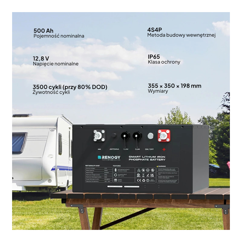 Dzięki kompaktowym wymiarom, niskiej wadze, zaawansowanemu BMS oraz funkcji samonagrzewania, Renogy Pro Smart 500 Ah jest jednym z najlepszych wyborów do instalacji w kamperach i vanach.
