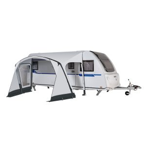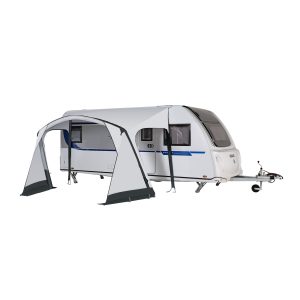 Nadmuchiwany daszek przeciwsłoneczny nadaje się do przyczep kempingowych o wysokości relingu do ok. 230–255 cm. Dzięki systemowi zaworów jest łatwy w montażu. Idealne rozwiązanie na weekendowe wyjazdy i spontaniczne, krótkie wakacje. Boczne wejścia są zdejmowane i można je zwinąć, co zapewnia optymalną elastyczność. Idealna, lekka markiza przeciwsłoneczna w bezkonkurencyjnej cenie.