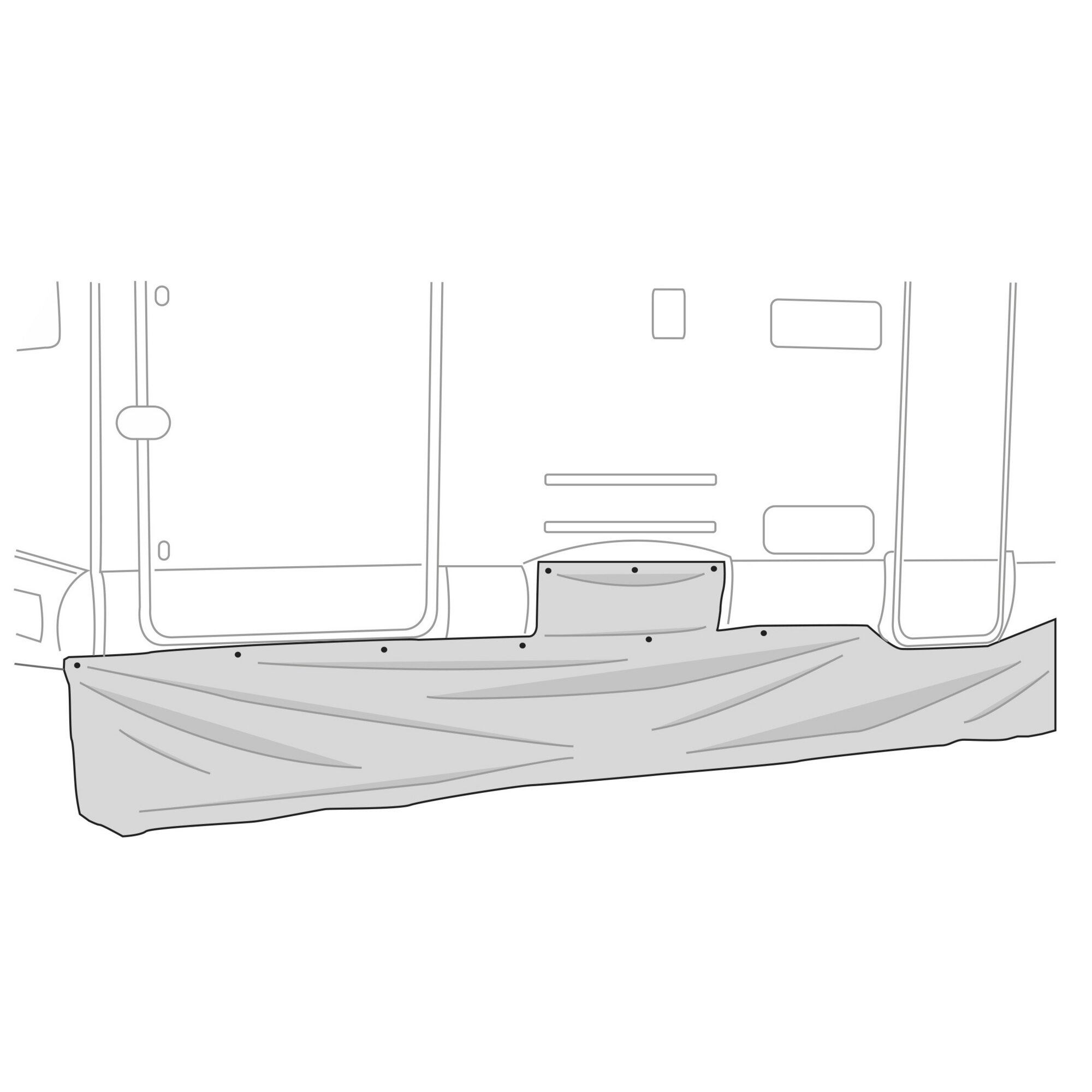 Opcjonalny panel przeciwwiatrowy, który zapobiega przeciągom pod pojazdem. Nadaje się do pomieszczeń o powierzchni do 550 cm. Można go skrócić w razie potrzeby.