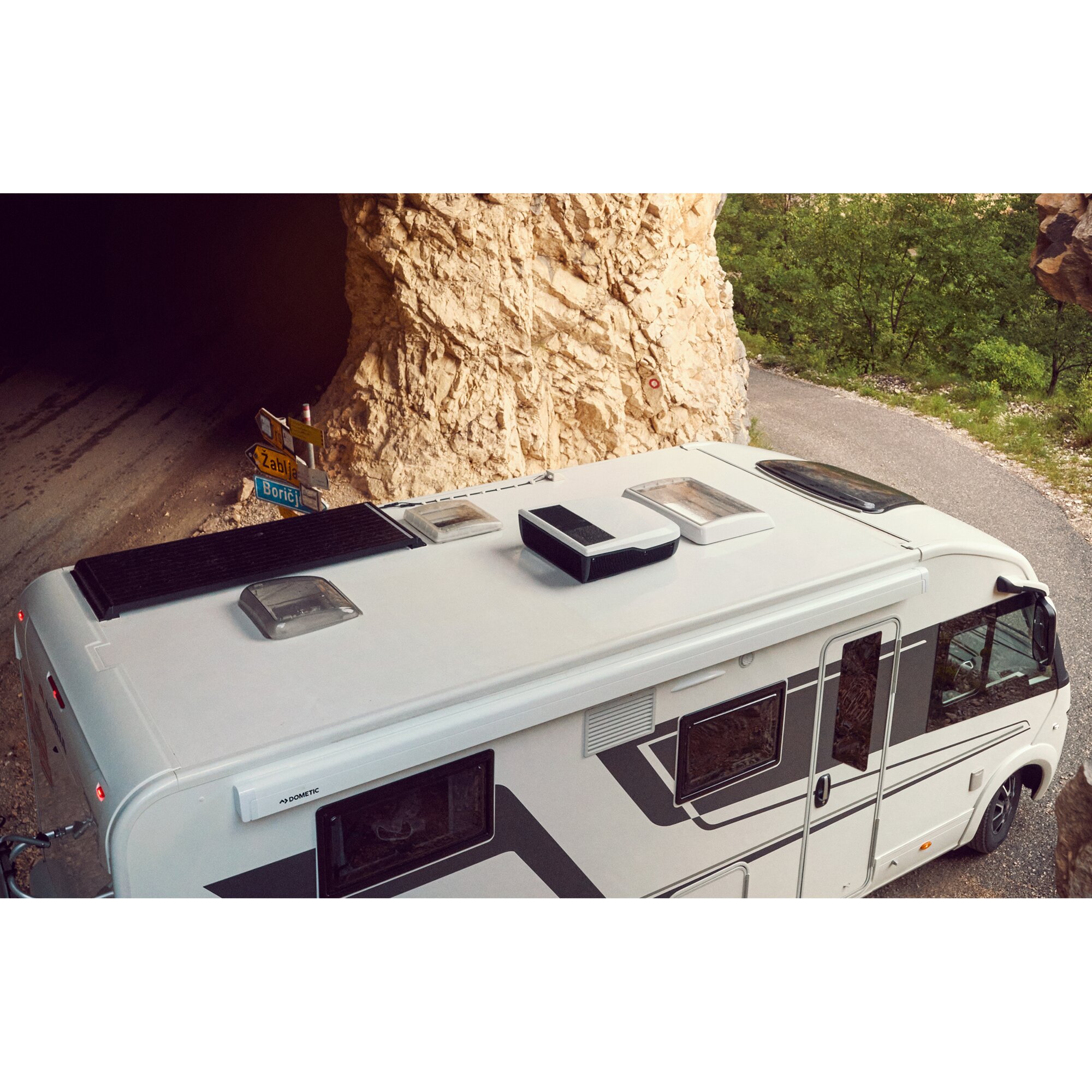 Dzięki nowoczesnej technologii sprężarki i pompy ciepła, FJX7 charakteryzuje się niższym zużyciem energii, zapewniając jednocześnie doskonałą wydajność chłodzenia, pozwalając na schłodzenie wnętrza pojazdu w rekordowo krótkim czasie. Technologia CleanAir skutecznie redukuje bakterie i nieprzyjemne zapachy, zapewniając świeży i czysty zapach w Twoim kamperze. Dzięki płynnej regulacji prędkości obrotowej sprężarki, FJX7 może pracować wyjątkowo cicho w trybie uśpienia, zawsze i niezawodnie utrzymując żądaną temperaturę. Wyrazista krzywa oświetlenia LED i aerodynamiczna obudowa nadają mu ekskluzywny design. Klimatyzatorem można wygodnie sterować za pomocą aplikacji Dometic Climate. Rozdzielacz powietrza z dotykowym panelem sterowania do regulacji temperatury i przepływu powietrza należy zamówić osobno.
