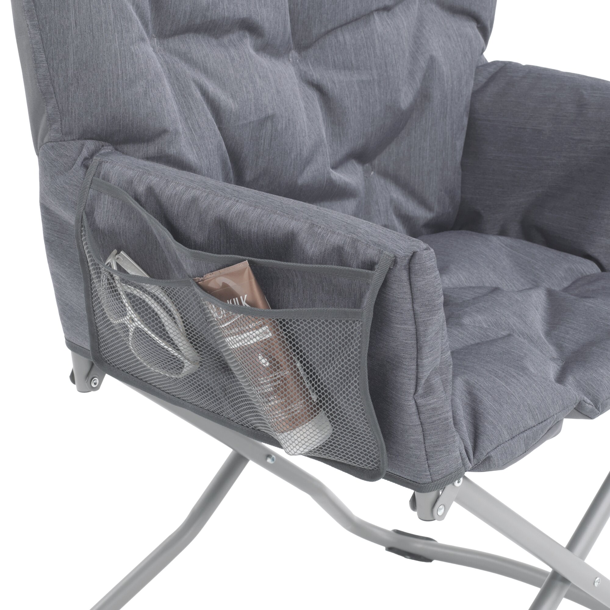 Z wyściełanym, składanym fotelem Grenada Lake marki Outwell poczujesz się jak w domu w każdym miejscu. Szybko składa się na płasko, gdy nie jest potrzebny. Miękka, wyjmowana wyściółka zapewnia komfort i podparcie w odpowiednich miejscach. Praktyczna kieszeń do przechowywania dodaje fotelowi uroku.