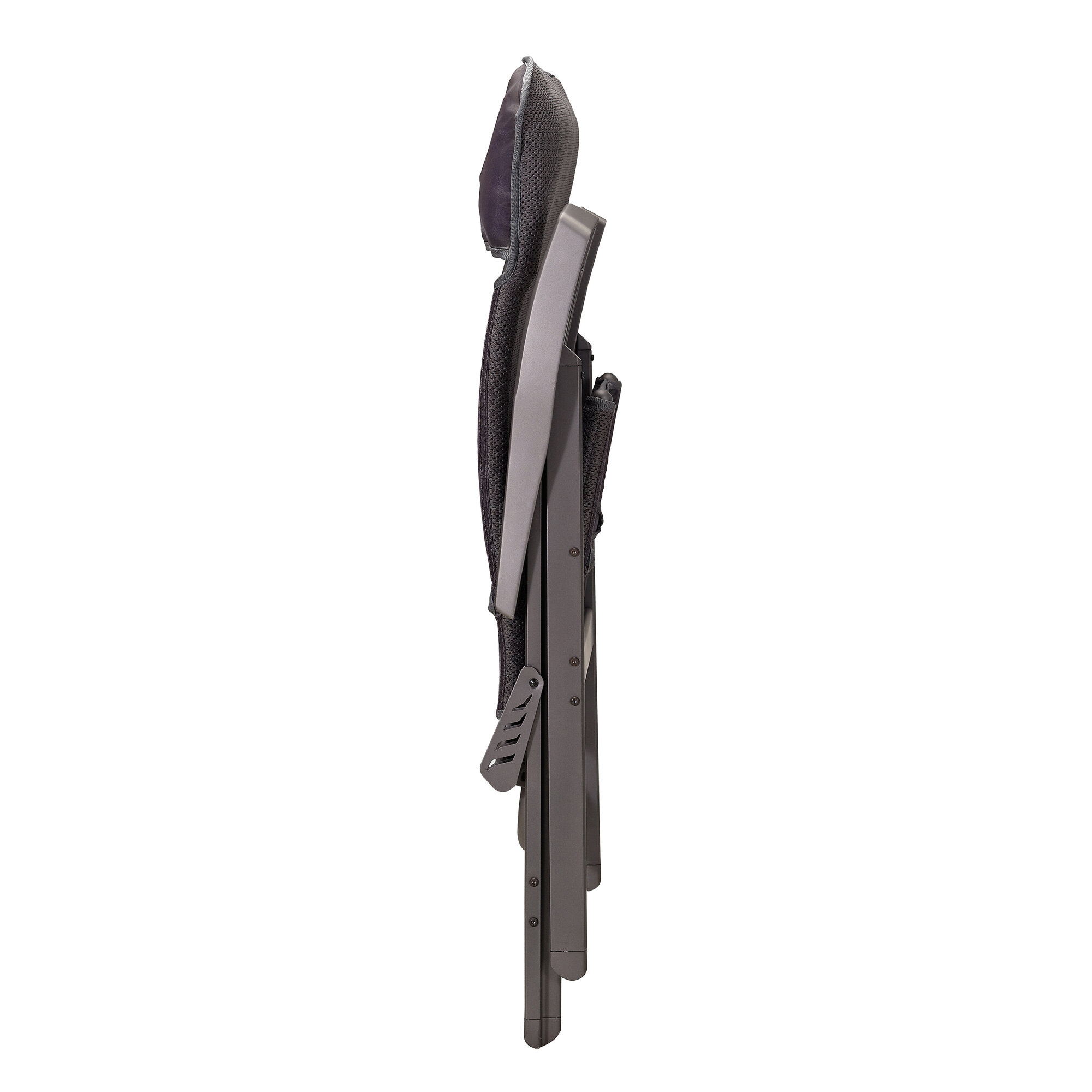 Pokrycie siedziska wykonane jest z ultramiękkiej siatki DuraDore® 3D Mesh z elastyczną warstwą środkową o grubości 0,8 cm, co sprawia, że krzesło jest niezwykle wygodne. Dodatkowy komfort zapewnia dłuższe o 3,5 cm siedzisko, wyposażone w unikalną technologię Ergoshell®. W oparciu zintegrowano poduszkę pod głowę o regulowanej grubości. Rama wykonana jest z ultralekkiego materiału DuraLite® i wyprodukowana w sprawdzonej technologii SpaceBox. Składane zawiasy wykonane są z aluminium.