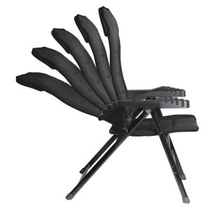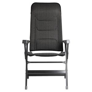 Krzesła kempingowe z malowaną proszkowo aluminiową ramą, oddychającym pokrowcem FULL-3D i metalowymi podłokietnikami z regulacją oparcia. Wyjątkowo solidna i zajmująca niewiele miejsca konstrukcja w połączeniu z nowoczesnym, funkcjonalnym wzornictwem. Pokrycie: oddychający, odporny na promieniowanie UV i szybkoschnący pokrowiec FULL-3D.