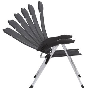 Składane krzesło na 4 nogach z 6-stopniową regulacją oparcia. Aluminiowa rama; materiał pokrycia: Syntex Plus. Wytrzymałe plastikowe podłokietniki. Możliwość dołączenia podnóżka. Kompaktowe i łatwe w transporcie po złożeniu.