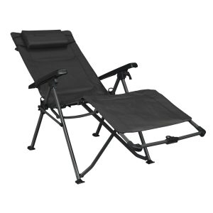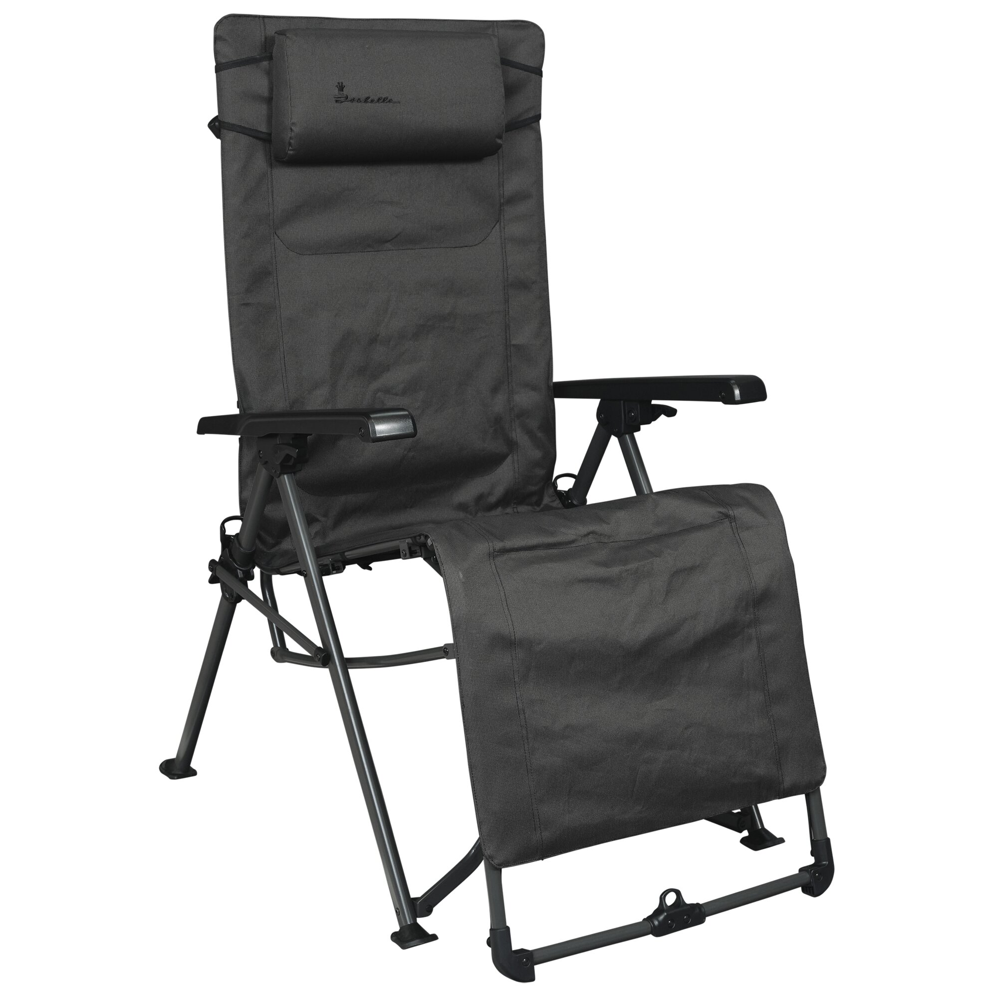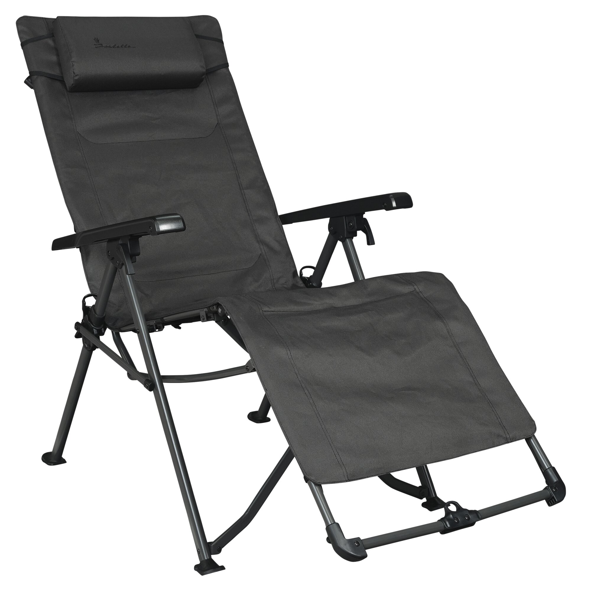 Ten składany leżak relaksacyjny oferuje maksymalny komfort od stóp do głów i można go złożyć do niewielkich rozmiarów po spakowaniu. Oparcie można odchylić bezstopniowo. Podnóżek również. Ergonomiczna konstrukcja i niezliczone pozycje pozwalają na optymalny relaks.