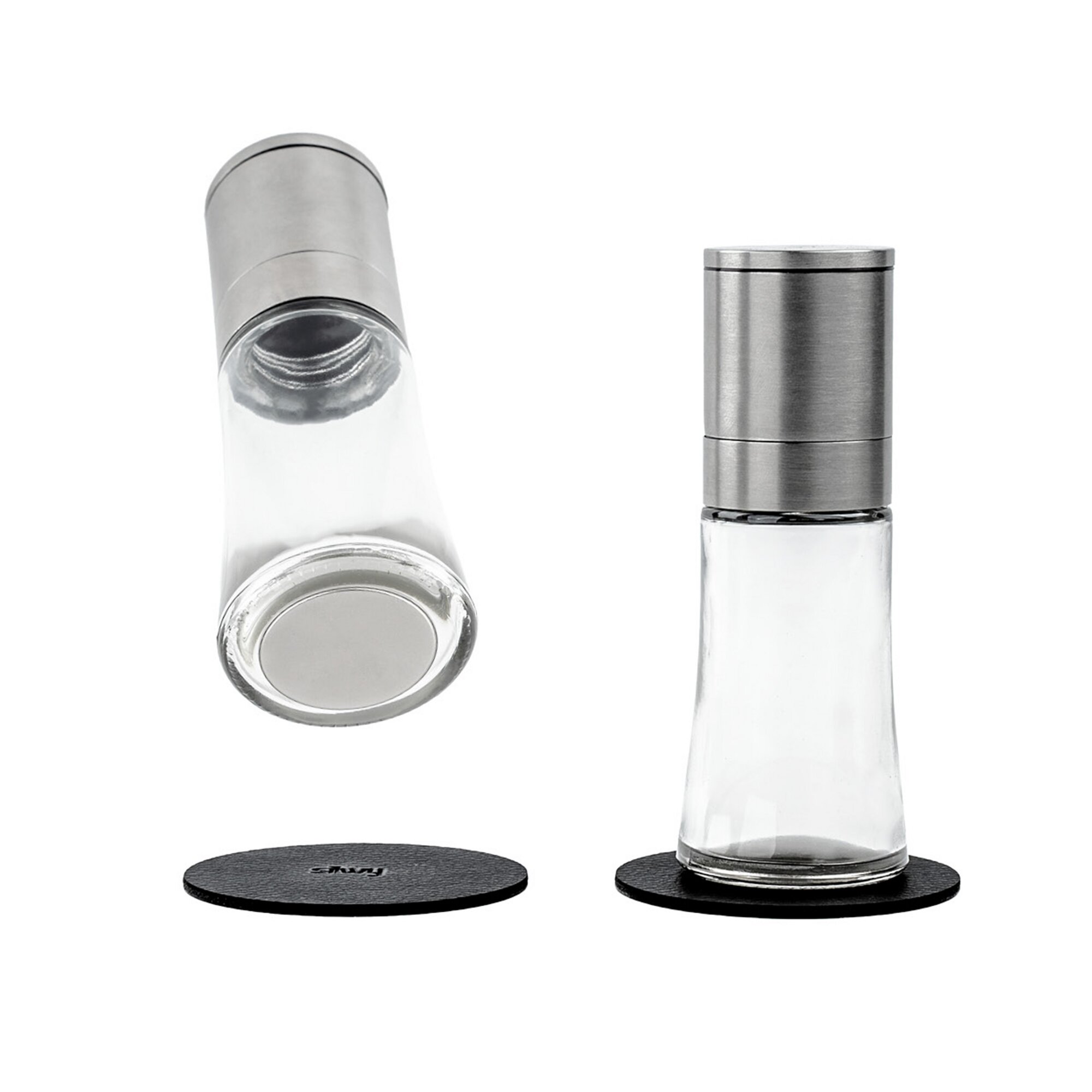 W połączeniu z metalowymi nanożelowymi wkładkami, magnetyczne młynki do przypraw nie przewrócą się, nawet w podróży. Ceramiczny młynek jest ręcznie regulowany (drobny, średni, gruboziarnisty). Młynki wykonane ze stali nierdzewnej, szkła i tworzywa sztucznego bez BPA są wielokrotnego użytku, a zatem wyjątkowo trwałe. Są również łatwe w czyszczeniu i można je po prostu umyć ręcznie wodą. Wkładki są mocowane bez śrub ani kleju i można je łatwo zdjąć, umyć i ponownie użyć.
