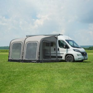 Rozpocznij wakacje z nadmuchiwaną markizą Mars o głębokości 250 cm. Idealnie pasuje i ma idealną szerokość do Twojego vana. Wszystkie segmenty okien/drzwi można całkowicie zdemontować w krótkim czasie, dzięki czemu nie ma żadnych przeszkód, a Ty masz wygodny daszek przeciwsłoneczny. Podwójna osłona przeciwbłotna i stała wentylacja przez górny otwór wentylacyjny sprawiają, że markiza jest jeszcze wygodniejsza.