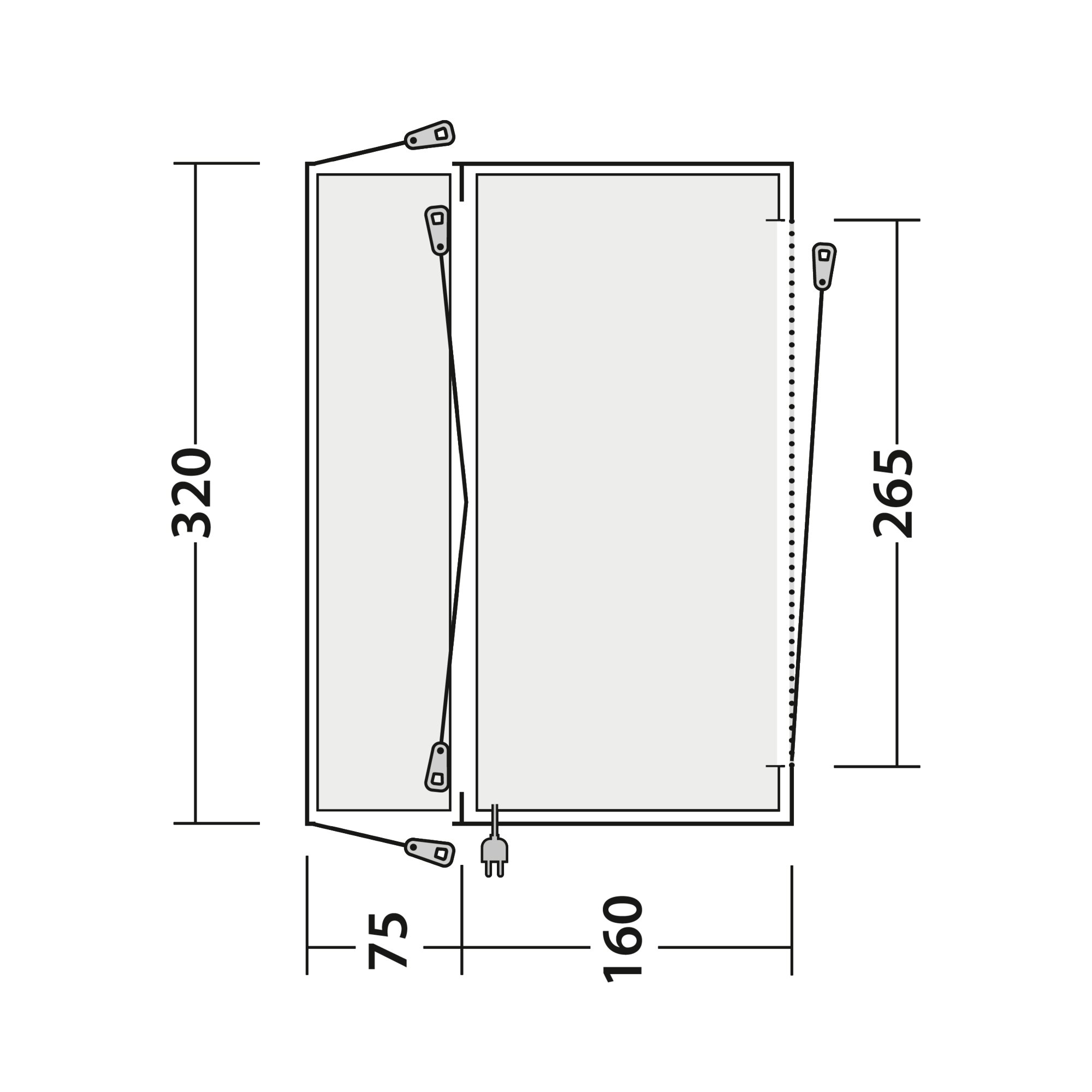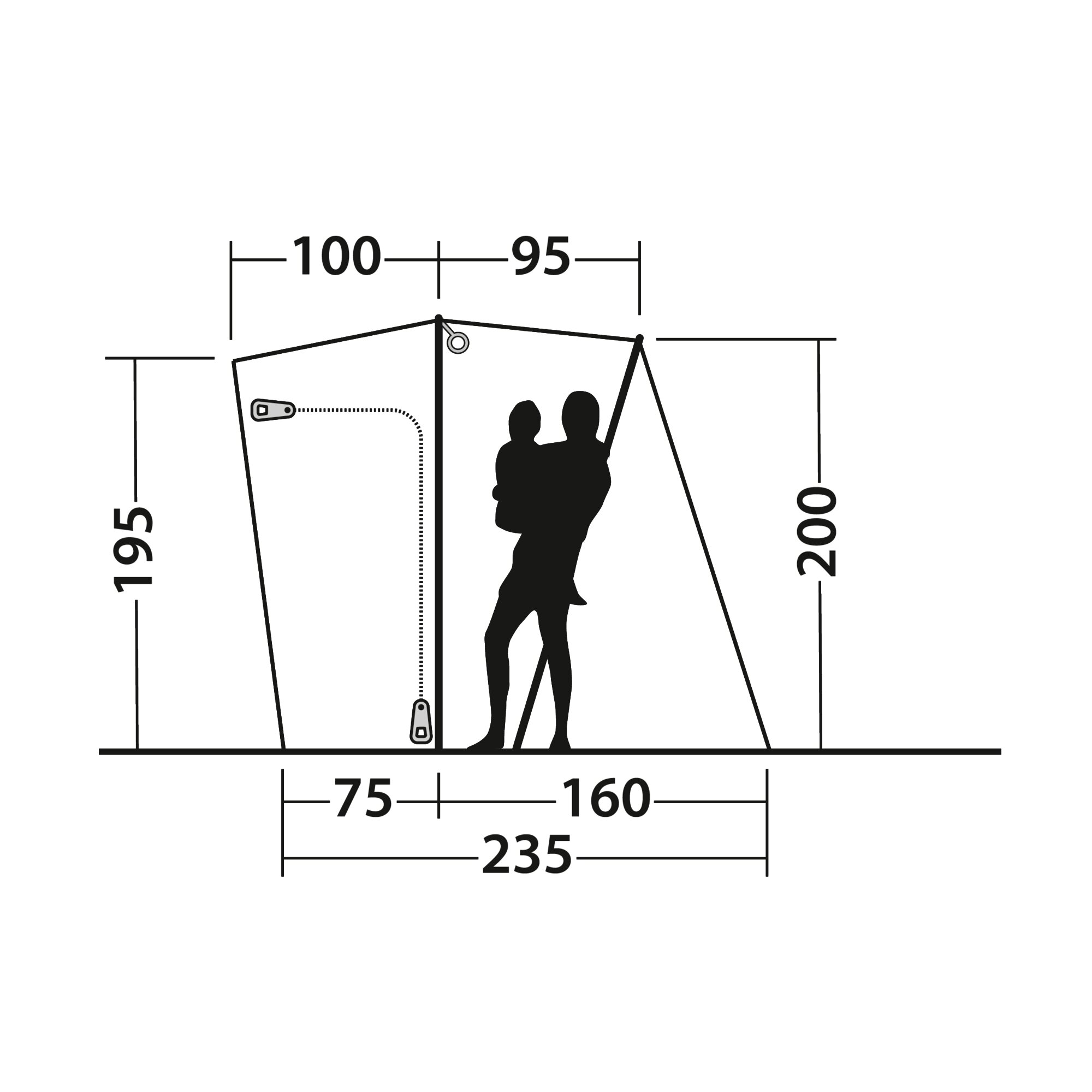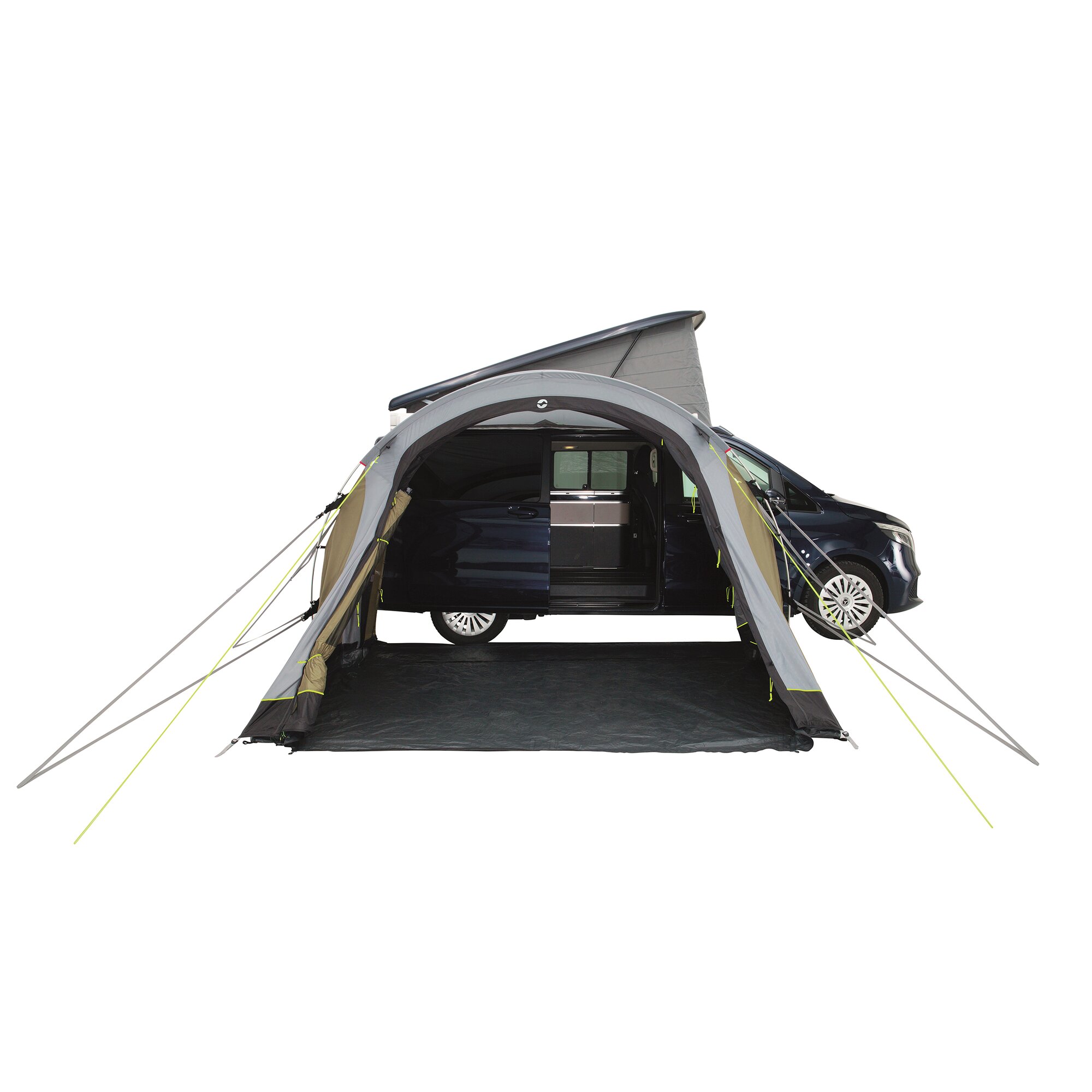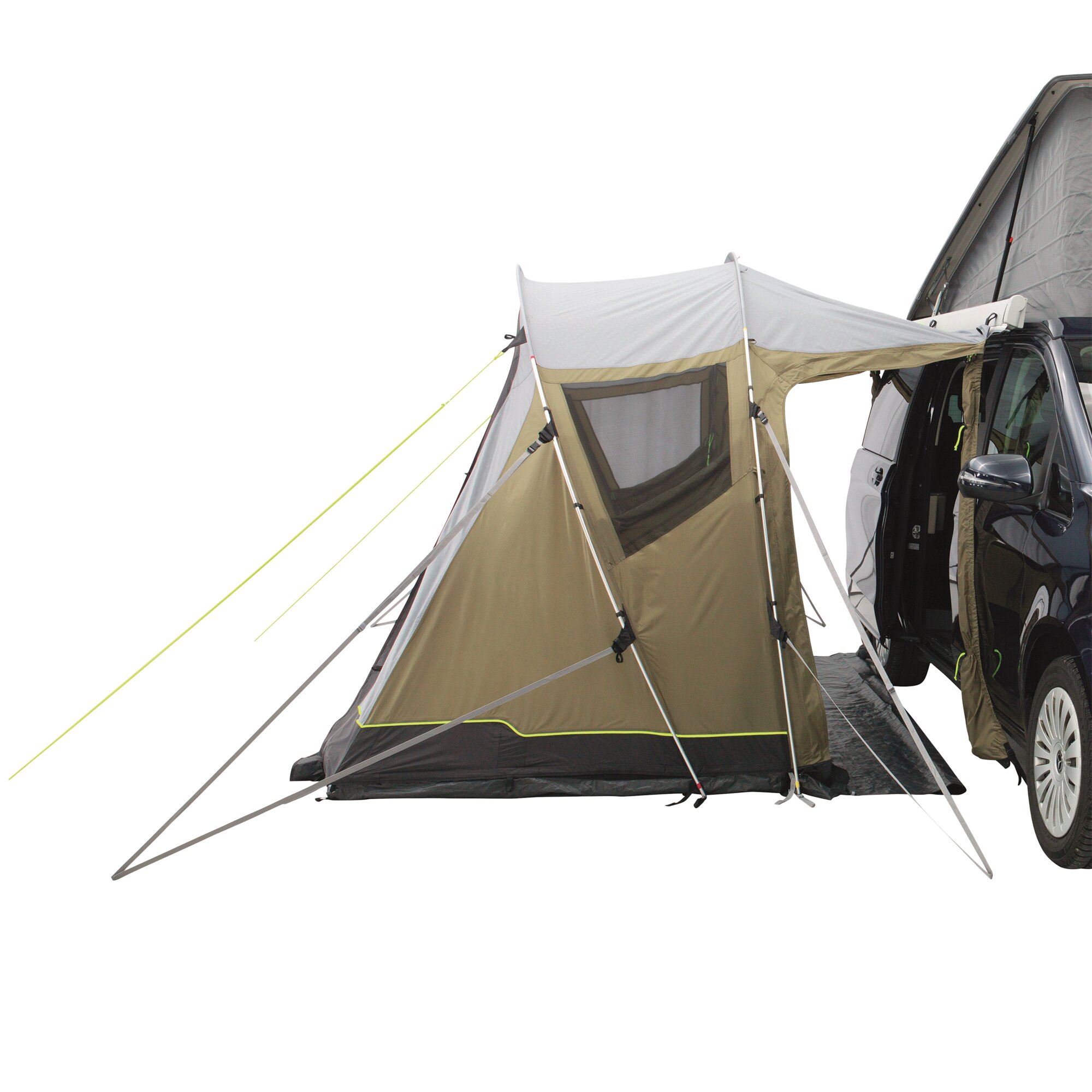 Wolnostojąca markiza zajmuje niewiele miejsca i jest bardzo kompaktowa i lekka. Dzięki dwóm lekkim aluminiowym słupkom łukowym, markizę rozkłada się w kilku prostych krokach. Podwyższoną podłogę, przymocowaną do ścianki markizy za pomocą rzepów, można również całkowicie zdjąć. Pozwala to jeszcze bardziej zmniejszyć rozmiar i wagę plecaka. Kilka okien z siatki z zapinanymi na suwak zasłonami zapewnia dobrą wentylację. W obszarze łącznika znajdują się przeciwległe boczne wejścia, ułatwiające dostęp do kampera i markizy.