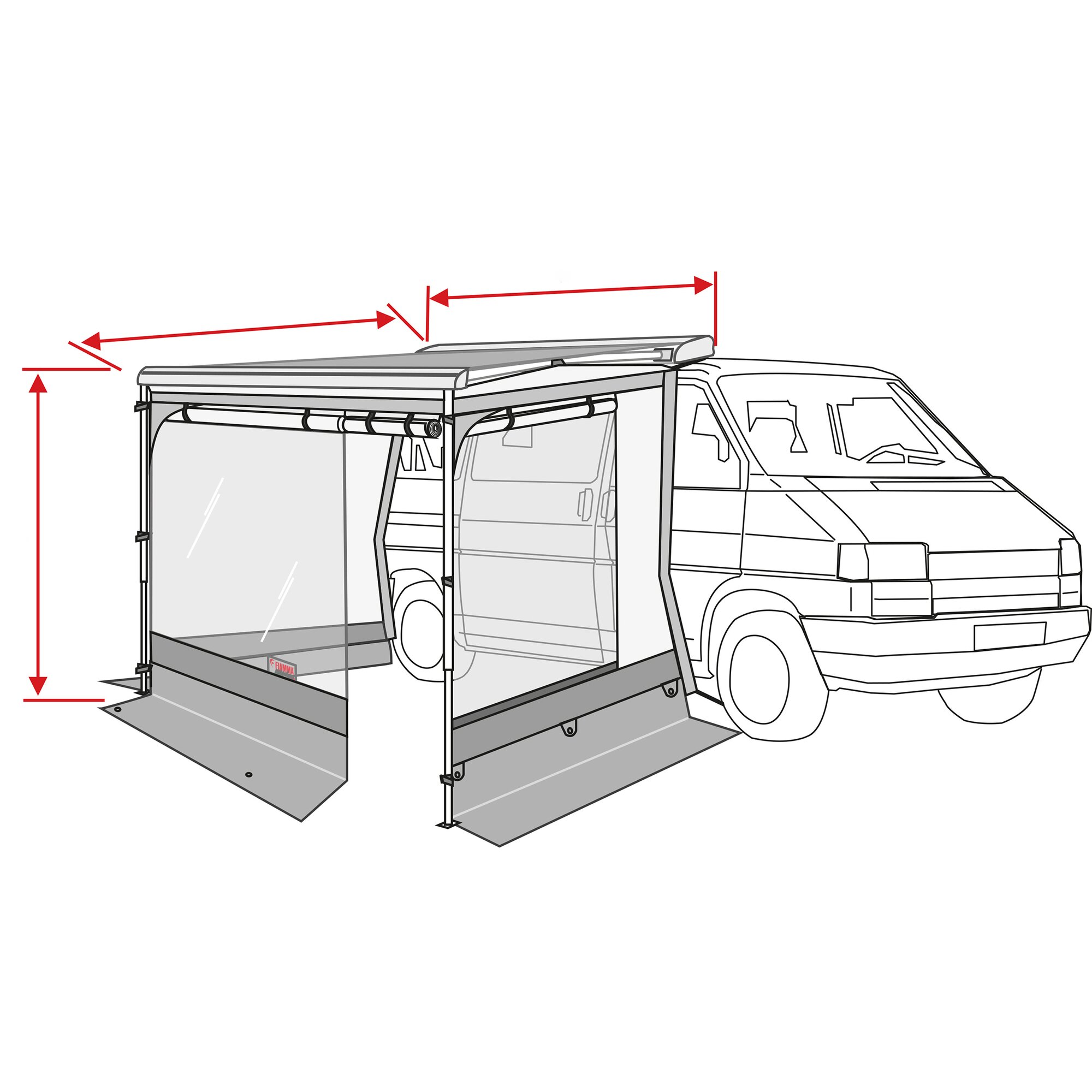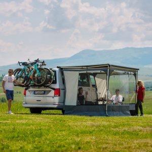 Funkcjonalna i wygodna ochrona prywatności dla markiz F40van i F43van. Wyposażona w drzwi i zwijane okna boczne z moskitierami. W połączeniu z markizą F40van lub F43van idealnie nadaje się na krótkie pobyty.