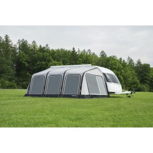 Elegancki design i nowoczesny, zaokrąglony kształt nie pozostawiają nic do życzenia. Dzięki głębokości 260 cm, nadmuchiwana markiza Ceres jest bardzo przestronna. Jest całkowicie wsunięta w szynę instalacyjną przyczepy kempingowej. Oznacza to, że wszystkie okna, drzwi i włazy serwisowe można łatwo otworzyć, a markiza jest szczelna. Wysokiej jakości materiał HydroTech® Ripstop, stała wentylacja i przyciemniane szyby zapewniają przyjemną temperaturę wewnątrz markizy nawet w upalne letnie dni. Dzięki dużym oknom panoramicznym zawsze masz doskonały widok i optymalne warunki oświetleniowe. Wysokość nadproża ok. 185 cm przy ścianie przedniej zapewnia optymalne wykorzystanie przestrzeni wewnątrz markizy, a dzięki systemowi AAS, nadmuchiwana markiza jest szybka i łatwa w montażu. Nowy model jest dodatkowo wyposażony w przyłącze do markizy przeciwsłonecznej Canopy Shady Pro i jest dostępny w innych rozmiarach.