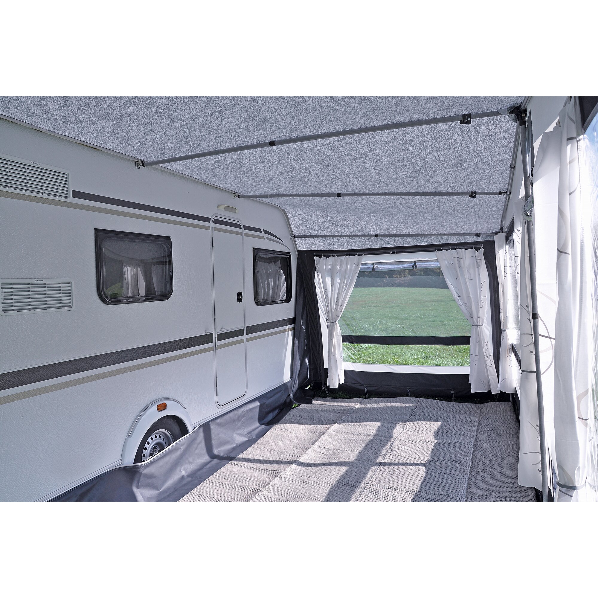 5-częściowa, designerska markiza podróżna z bogatym wyposażeniem oferuje przestrzeń dla całej rodziny. Okna wyposażone są w zasłony z rolkami. Markiza wyposażona jest w specjalne orurowanie, umożliwiające montaż bezśrubowych wsporników mocujących (wsporniki nie są dołączone). Cztery klipsy do paska sztormowego, fartuch przeciwwiatrowy (napinany od wewnątrz lub na zewnątrz) oraz narożnik Vario na przedniej ścianie przyczepy dopełniają markizę. Orurowanie do zamocowania przedłużenia po prawej stronie oraz stała wentylacja górna z zamkiem błyskawicznym sprawiają, że markiza jest funkcjonalnym towarzyszem. Melanż w baldachimie umożliwia montaż drążków baldachimu.