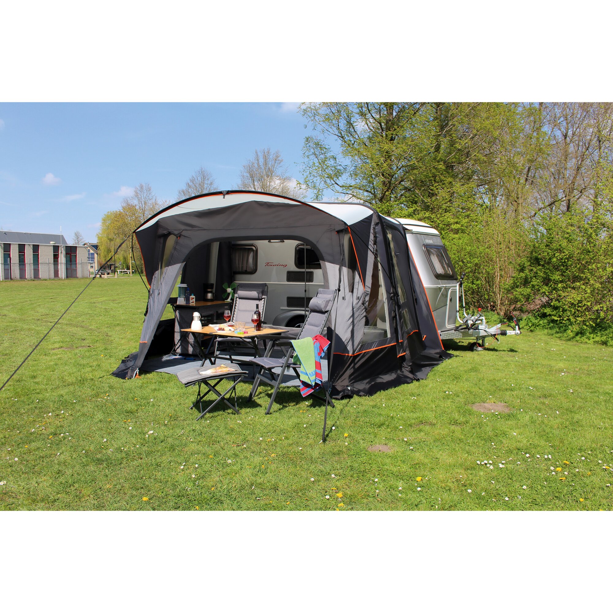 Nadmuchiwany namiot kempingowy Palermo Air został opracowany specjalnie do przyczep kempingowych z podnoszonym dachem (np. modele Hymer Eriba Touring z wyjątkiem modelu Puk) i wysokością połączenia 180–220 cm. Dzięki systemowi rur powietrznych jego rozstawienie jest szybkie i łatwe. Przestrzeń mieszkalna oferuje dużo miejsca na stół, krzesła i inny sprzęt kempingowy. Dołączone rury stabilizujące są wsuwane pod sufit, co zapewnia naprężenie dachu i dodatkową stabilność przed wiatrem. Dwa zamykane, siatkowe okna wentylacyjne pod daszkiem zapewniają stałą wentylację. Sam daszek zapewnia cień i chroni przed deszczem podczas wchodzenia do namiotu. Namiot posiada dodatkowe drzwi wejściowe po obu stronach z dużymi oknami z osłonami, a także jest wyposażony w rury stabilizujące z tworzywa sztucznego wzmocnionego włóknem szklanym (GRP) i drążki podporowe.