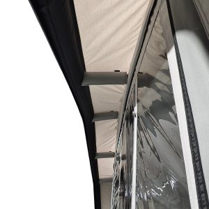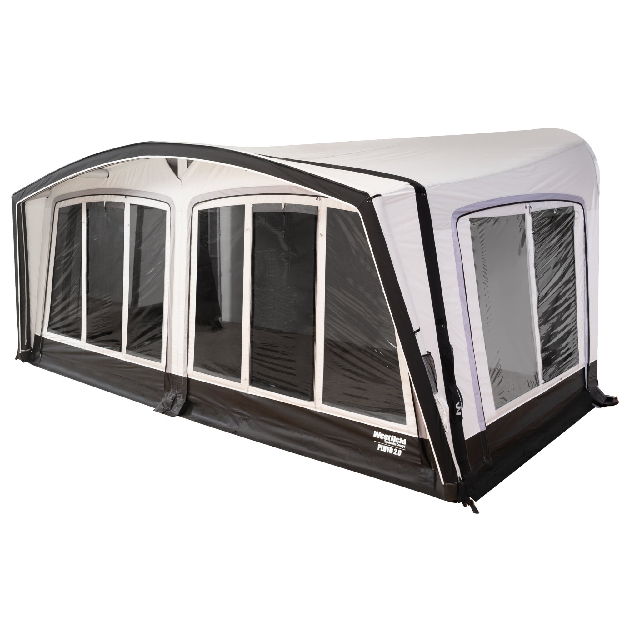 Dzięki technologii AAS air, nadmuchiwana markiza Pluto jest szybka i łatwa w montażu. Jest ona całkowicie wsuwana w szynę instalacyjną przyczepy kempingowej. Oznacza to, że wszystkie okna, drzwi i włazy serwisowe można łatwo otworzyć, a boki przyczepy są uszczelnione przed wiatrem i warunkami atmosferycznymi. Dzięki wysokiej jakości materiałowi HydroTech® CottonTouch, stałej wentylacji i przyciemnianym szybom, temperatura wewnątrz markizy będzie przyjemna nawet w upalne letnie dni. Zdejmowane ściany przednia i boczne są wyposażone w moskitiery i można je używać w razie potrzeby. Model ten jest dodatkowo wyposażony w przyłącze do baldachimu przeciwsłonecznego Canopy Shady Pro.