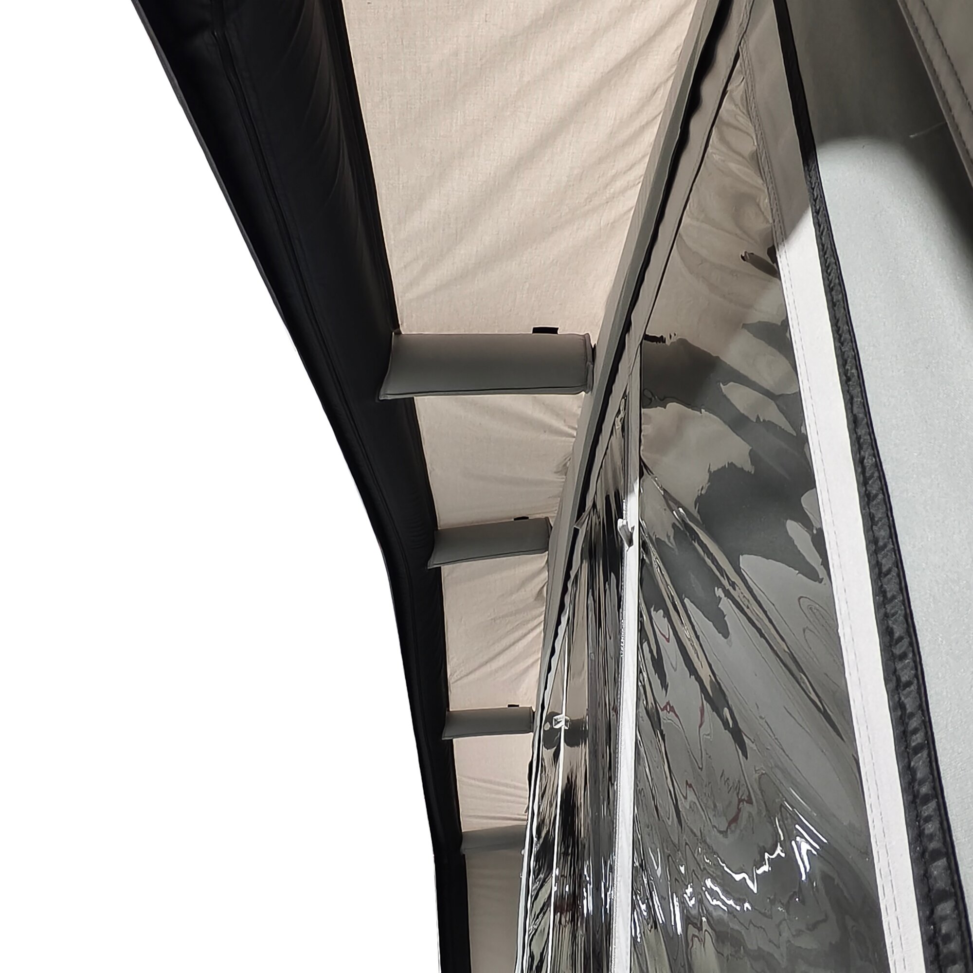Ściany boczne: zdejmowane, z moskitierami. Można używać w razie potrzeby.