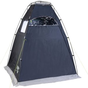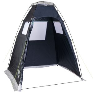 Wygodny namiot kabinowy wykonany z materiału odpornego na promieniowanie UV, idealny na kemping i plażę. Można go używać pod prysznicem lub podczas przebierania się, a dzięki systemowi wentylacji również jako namiot kuchenny. Łatwy w rozstawianiu. Z drzwiami na suwak i dookoła fartuchem przeciwbłotnym. Strome ściany zapewniają przestronne wnętrze. Kompaktowy rozmiar po złożeniu.