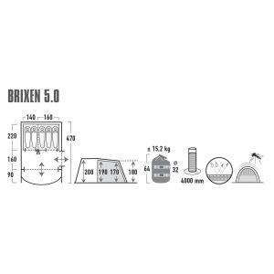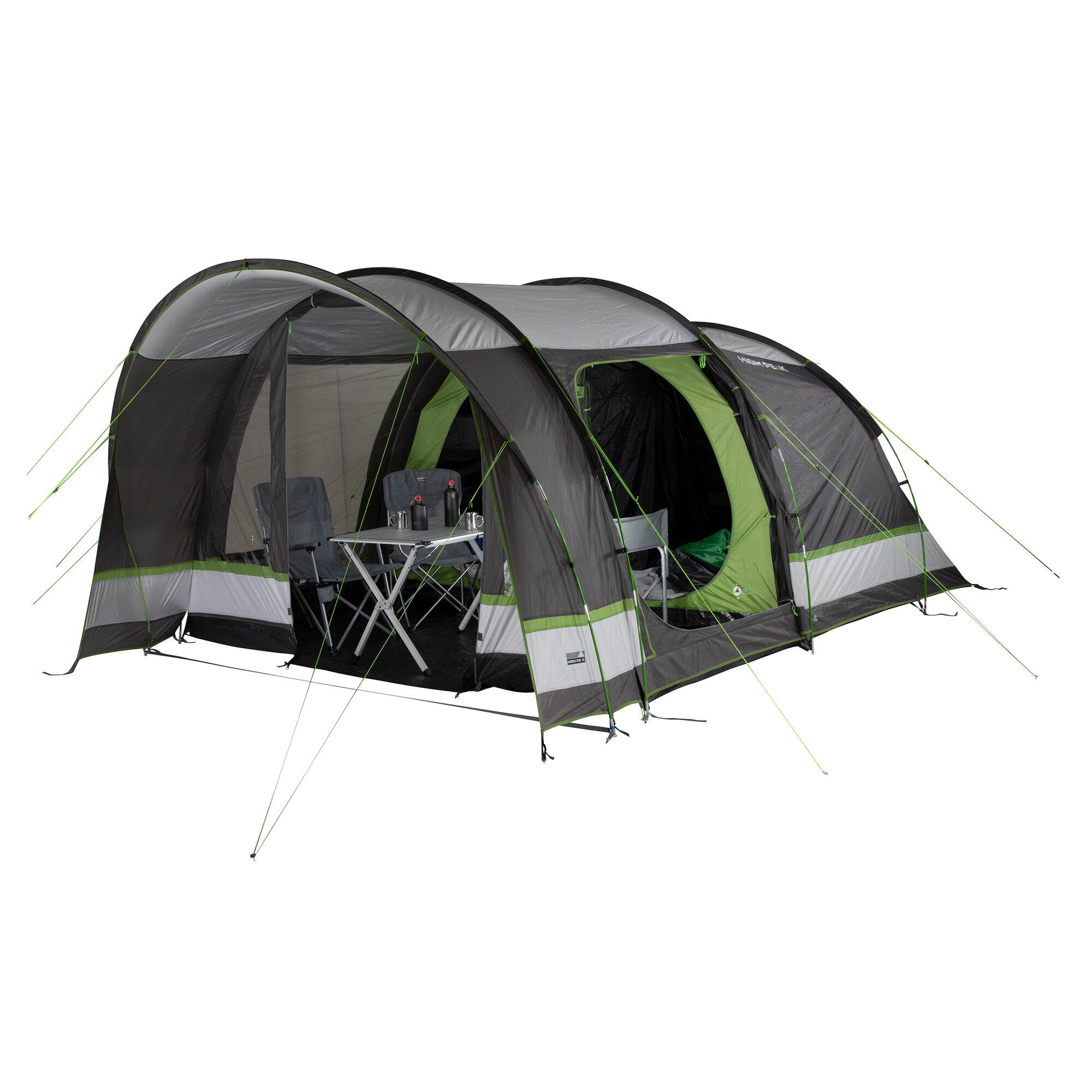 Namiot tunelowy ma wszytą podłogę, która chroni przed wilgocią, brudem i pełzającymi zwierzętami. Baldachim zapewnia cień i ochronę przed wiatrem i warunkami atmosferycznymi. Część dzienna o wysokości 1,9 m oferuje miejsce na sprzęt kempingowy. Wejście zabezpieczone przed warunkami atmosferycznymi posiada duże okno z moskitierą, które można regulować od wewnątrz i które służy do stałej wentylacji. Boczne wejście z moskitierą dodatkowo wentyluje część dzienną. Trzy przezroczyste okna z folii wpuszczają światło do wnętrza, a zasłony chronią przed ciekawskimi spojrzeniami. Podłogę z przodu można rozsunąć na zamek błyskawiczny, co zapobiega potknięciu. Dach ma aluminiową powłokę i odbija ciepło. 3-stopniowa wentylacja High Peak „Dual Flow” optymalnie dostosowuje się do każdej pogody.