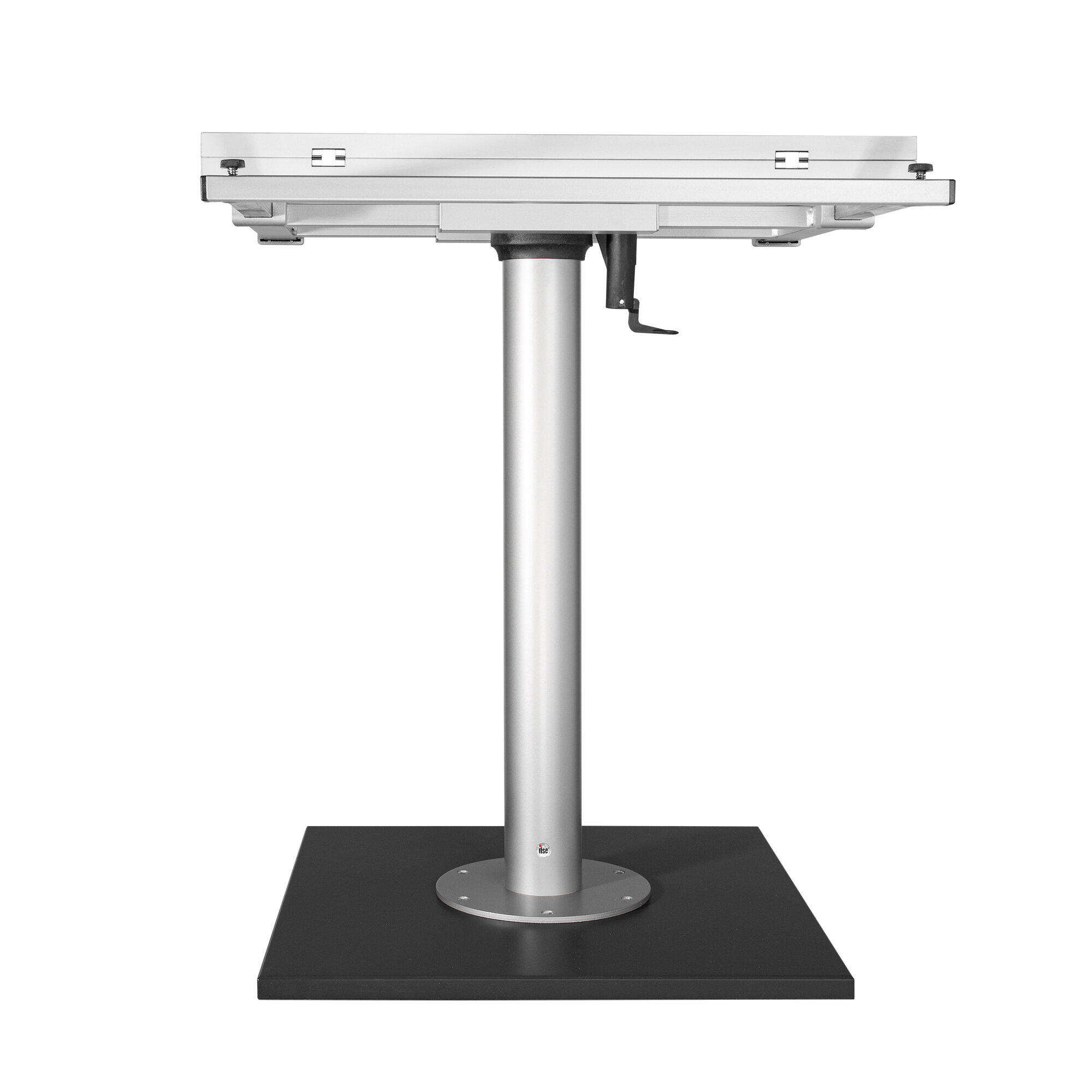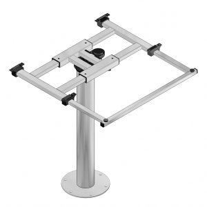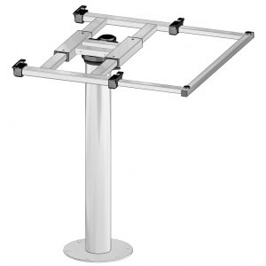 Noga stołu mocowana centralnie z mechanizmem przesuwnym, obrotem o 360° i wysuwaną podstawą, podwajająca rozmiar blatu. Wysokość do dolnej krawędzi blatu 700 mm. Regulacja wzdłużna 30 cm. Wysuwana podstawa 21,5 cm. Blat i powierzchnia montażowa nie są zawarte w zestawie.