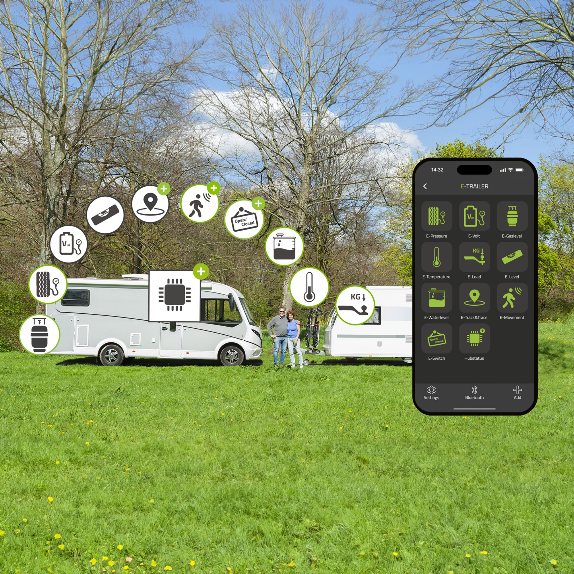 E-Trailer Starter Pack Plus współpracuje z transmisją Bluetooth i Internetem, umożliwiając zdalne pobieranie informacji. Pakiet E-Trailer Starter Pack Plus składa się ze stacji bazowej, którą należy zamontować w pojeździe, modułów E-Volt (napięcie akumulatora), E-Level (poziomica) i E-Track&Trace (śledzenie GPS), a także aplikacji E-Trailer. Dodatkowo można dodać kolejne moduły E-Trailer z Bluetooth i połączeniem internetowym.