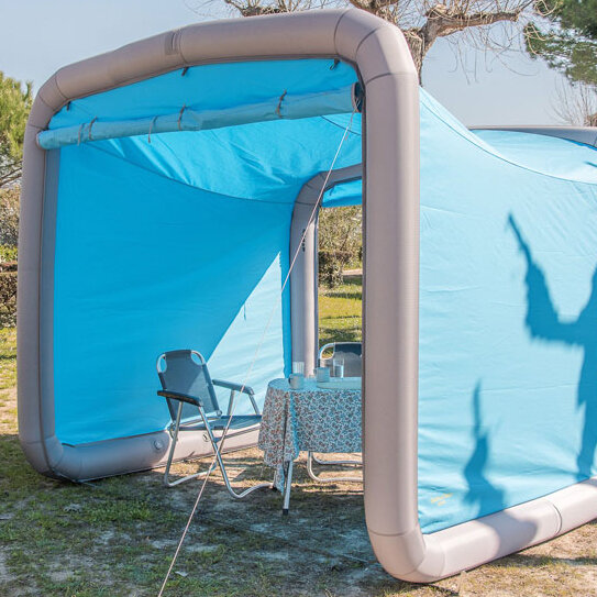 Przednie ścianki GT Boxa można zwinąć, całkowicie zdjąć dzięki zamkowi błyskawicznemu lub wykorzystać jako daszek przeciwsłoneczny z teleskopowymi drążkami. Pasuje do modeli Basic i Camping.