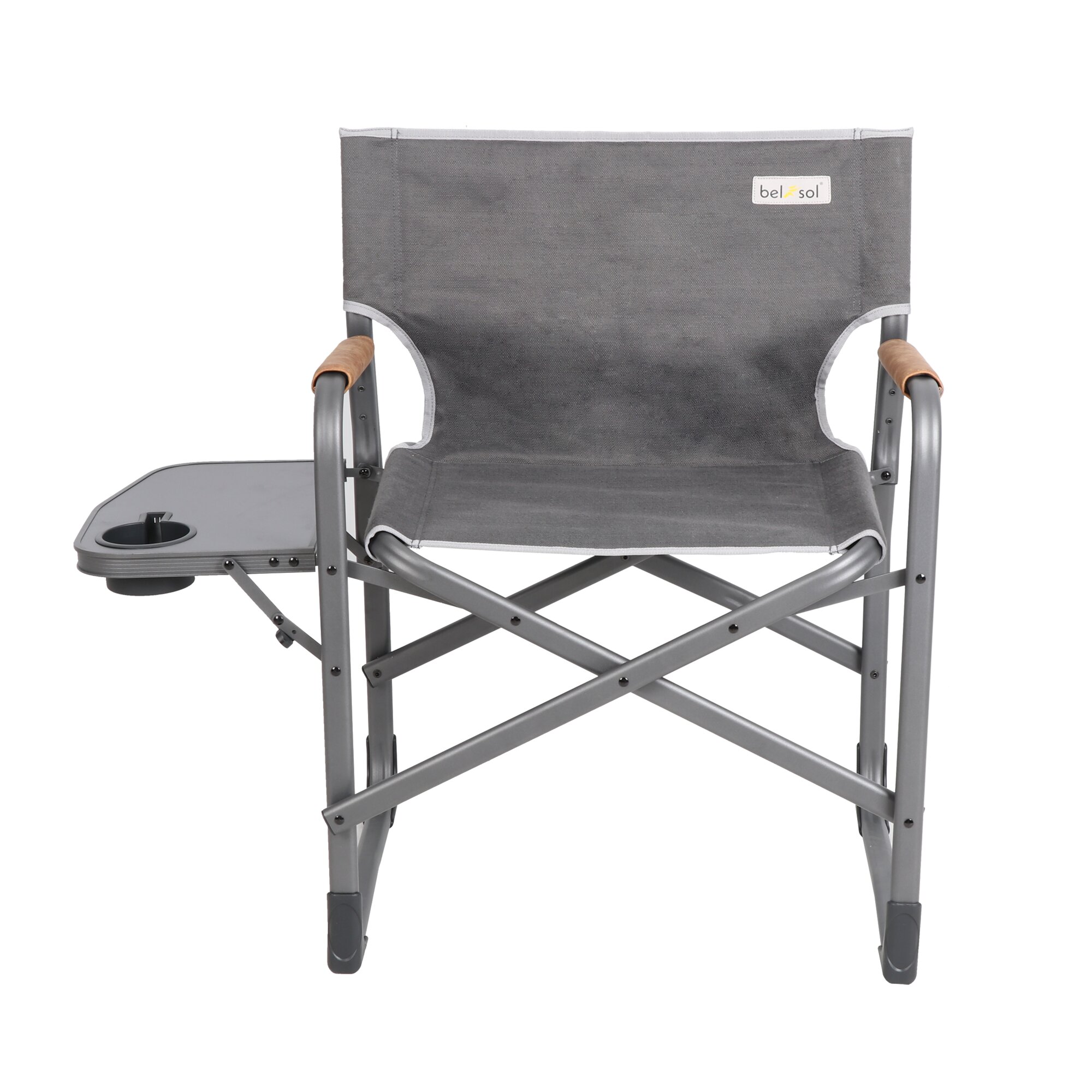 Fotel reżyserski ze stolikiem bocznym i uchwytem na kubek. Łatwy w transporcie dzięki pasom nośnym.