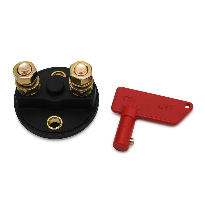 100 A. Umożliwia szybkie i bezpieczne odcięcie zasilania w pojazdach, łodziach, kamperach oraz systemach off-grid, zwiększając bezpieczeństwo całej instalacji. Przeznaczony do niskonapięciowych systemów zasilania w motoryzacji, zastosowaniach morskich oraz autonomicznych układach fotowoltaicznych, gdzie wymagana jest niezawodna separacja akumulatora. Niewielkie wymiary ułatwiają montaż w szafach zasilających, a wytrzymała obudowa zapewnia odporność na warunki zewnętrzne i długą żywotność w codziennym użytkowaniu. Może pełnić rolę głównego wyłącznika serwisowego lub elementu bezpieczeństwa w skrzynkach i szafach zasilających (np. Szafa FF01-6615-12BL V2 z termostatem), instalacjach PV off-grid, kamperach, łodziach oraz innych systemach, w których wymagane jest szybkie i pewne odłączenie akumulatora.