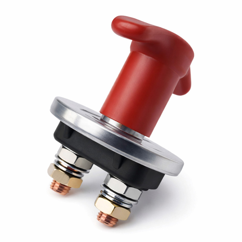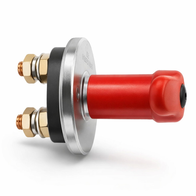 250 A. Zapewnia szybkie i bezpieczne odcięcie zasilania w pojazdach, łodziach, kamperach oraz systemach off-grid, zwiększając bezpieczeństwo całej instalacji. Zaprojektowany do niskonapięciowych systemów zasilania w motoryzacji, zastosowaniach morskich oraz autonomicznych układach fotowoltaicznych, gdzie wymagana jest niezawodna separacja akumulatora. Może pełnić rolę głównego wyłącznika serwisowego lub elementu bezpieczeństwa w skrzynkach i szafach zasilających (np. Szafa FF01-6615-12BL V2 z termostatem), instalacjach PV off-grid, kamperach, łodziach oraz innych systemach, w których wymagane jest szybkie i pewne odłączenie akumulatora.