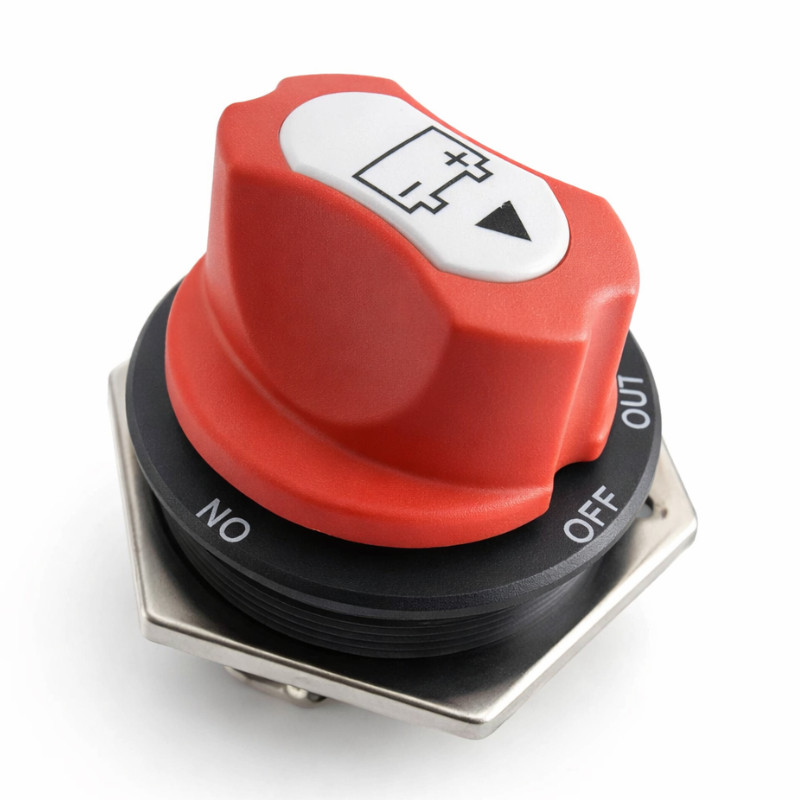 300 A. Zapewnia szybkie i bezpieczne odcięcie zasilania w pojazdach, łodziach, kamperach oraz systemach off-grid. Przystosowany do niskonapięciowych instalacji w pojazdach, jednostkach pływających oraz systemach autonomicznych. Oszczędza miejsce i zapewnia trwałość w codziennym użytkowaniu, także w wymagających warunkach zewnętrznych. Może pełnić rolę głównego wyłącznika serwisowego lub elementu bezpieczeństwa w skrzynkach i szafach zasilających, instalacjach PV off-grid, kamperach oraz jednostkach pływających.