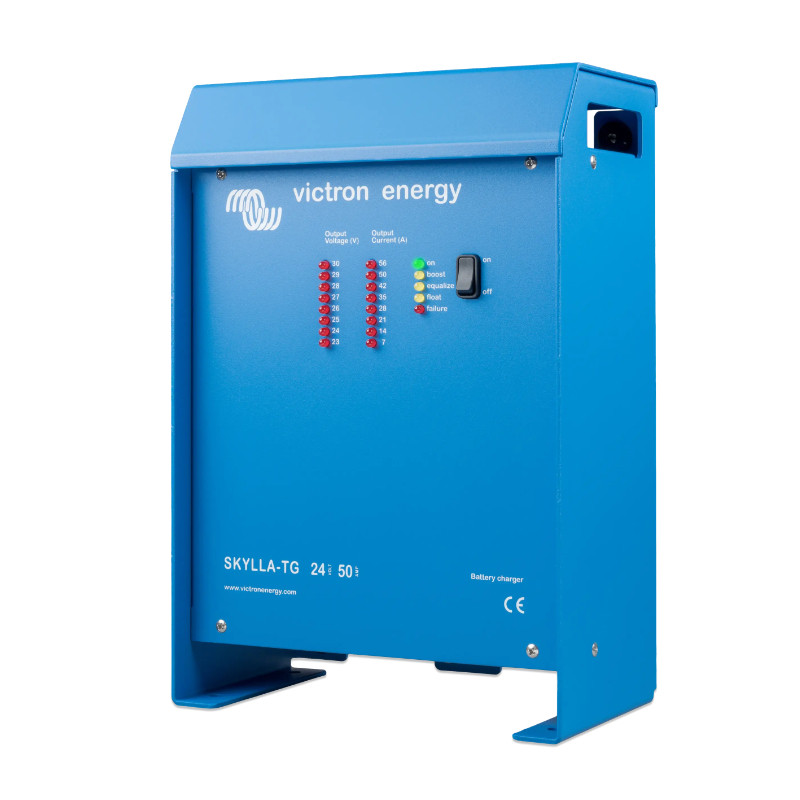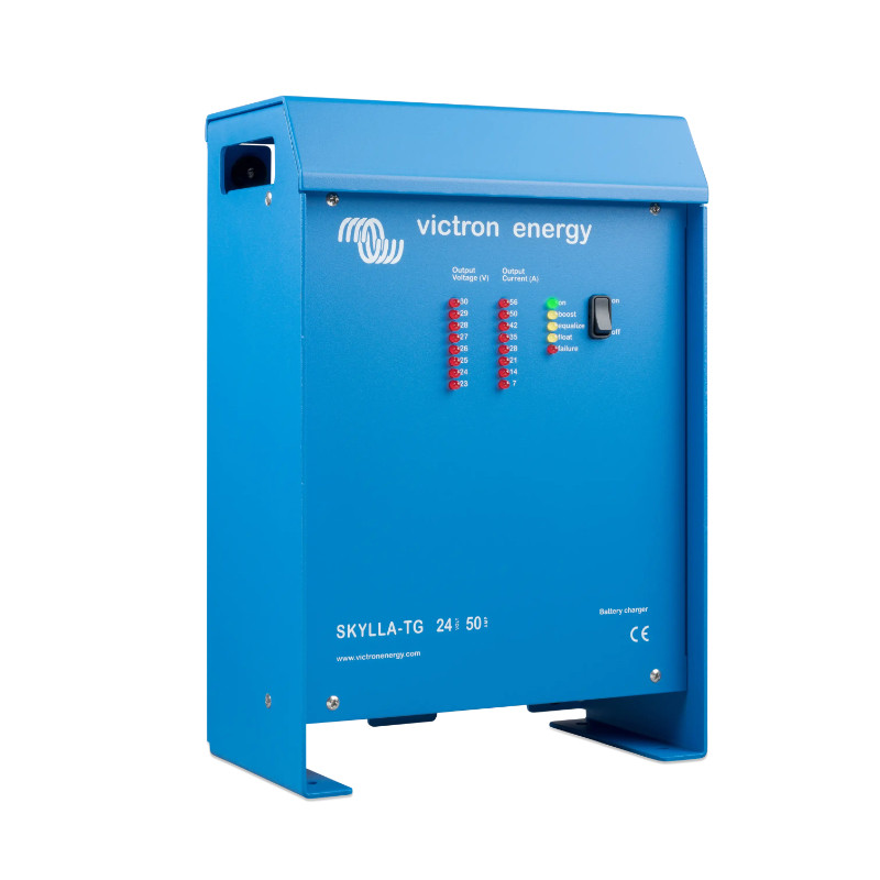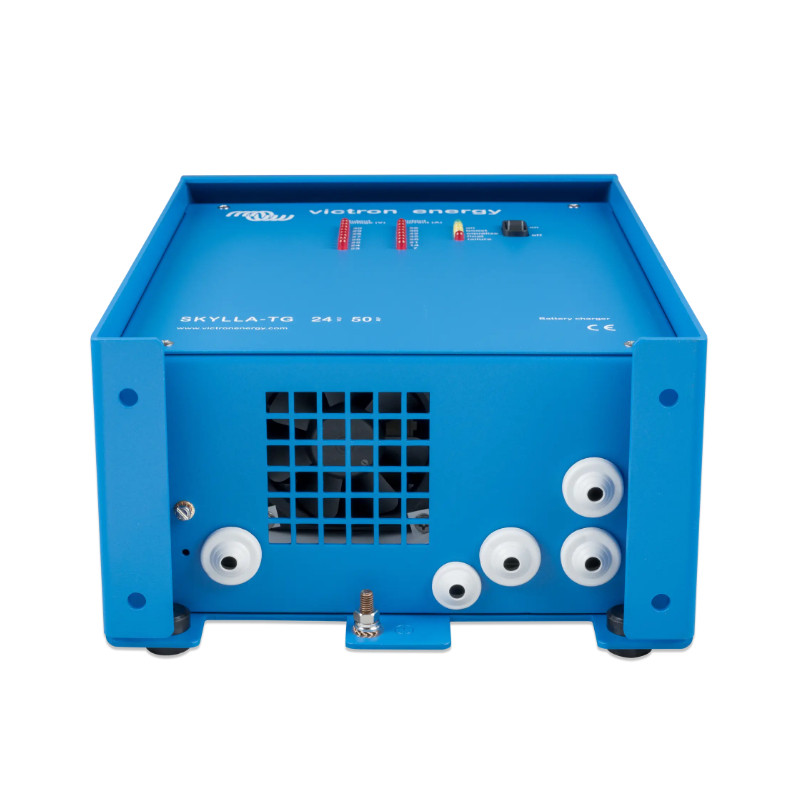 Victron Skylla-TG 24/50 (1+1) to profesjonalna, mocna ładowarka akumulatorów 24 V o prądzie ładowania 50 A. Została zaprojektowana do ładowania baterii o pojemności 250–500 Ah. Dzięki zaawansowanemu mikroprocesorowi i trójstopniowej charakterystyce ładowania (IUoUo) zapewnia optymalne i bezpieczne ładowanie, wydłużając żywotność akumulatorów.