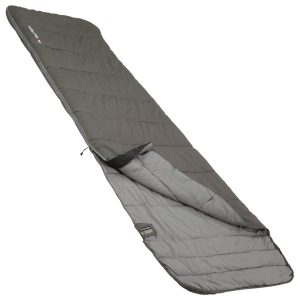 Prostokątny śpiwór z miękką bawełnianą powłoką zewnętrzną i podszewką oraz wypełnieniem Dura Loft. Wyposażony w dwukierunkowy zamek błyskawiczny, izolację na zamek błyskawiczny, zabezpieczenie przed przytrzaśnięciem, wewnętrzną kieszeń, spód z zamkiem błyskawicznym i worek kompresyjny. Idealny do przyczep kempingowych, na kemping lub jako koc do użytku w mieszkaniu wakacyjnym lub w domu. Ten śpiwór nie zawiera PFC!