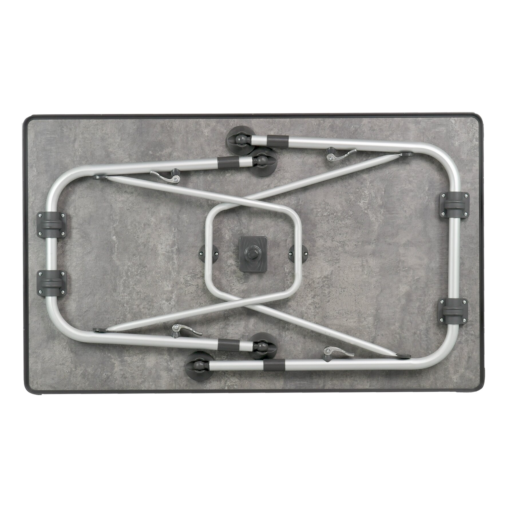 Bardzo wytrzymałe stoły z rur aluminiowych z unikalnym, łatwym w obsłudze mimośrodowym systemem blokowania. Wszystkie cztery nogi są płynnie regulowane na wysokość i solidne. Blat odporny na warunki atmosferyczne.