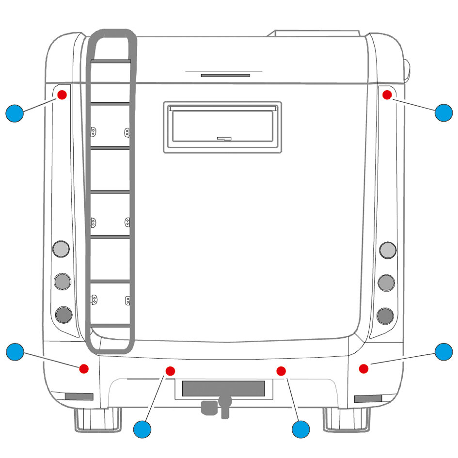 System z 6 kompaktowymi czujnikami cyfrowymi (ø 18 mm), które można polakierować w kolorze pojazdu, idealnie nadaje się do pojazdów o szczególnie wysokich lub szerokich wymiarach. Pomiar uwzględnia również elementy mocujące do nadwozia, takie jak np. bagażniki rowerowe lub haki holownicze. Po zamontowaniu bagażnika rowerowego system można ręcznie przełączać między 2 strefami zatrzymania, w zależności od tego, czy bagażnik jest złożony, czy rozłożony. System ostrzega akustycznie o przeszkodach w zasięgu wykrywania ok. 3 m, a czułość jest regulowana w 3 stopniach.