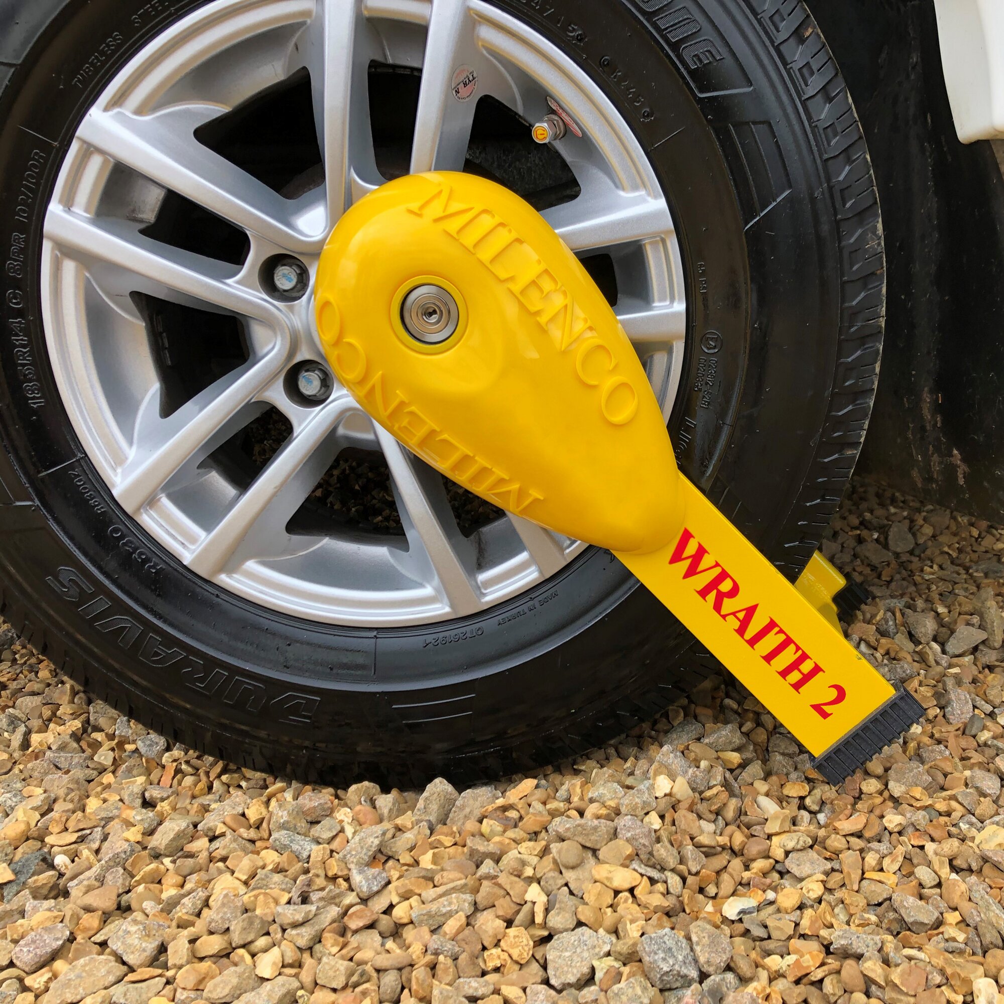 Zacisk na koło Wraith 2 zapewnia bezkompromisowe bezpieczeństwo Twojego kampera. Blokuje się go specjalną śrubą i osłania oponę, zapobiegając jej obracaniu. W rezultacie stanowi on silne wizualne zabezpieczenie przed kradzieżą i chroni pojazd przed atakami. Ta blokada o wysokim poziomie bezpieczeństwa wykonana jest z wysokiej jakości stali, dzięki czemu jest wyjątkowo odporna na wiercenie, piłowanie, wbijanie młotkiem, mrożenie i wszelkie inne typowe ataki.