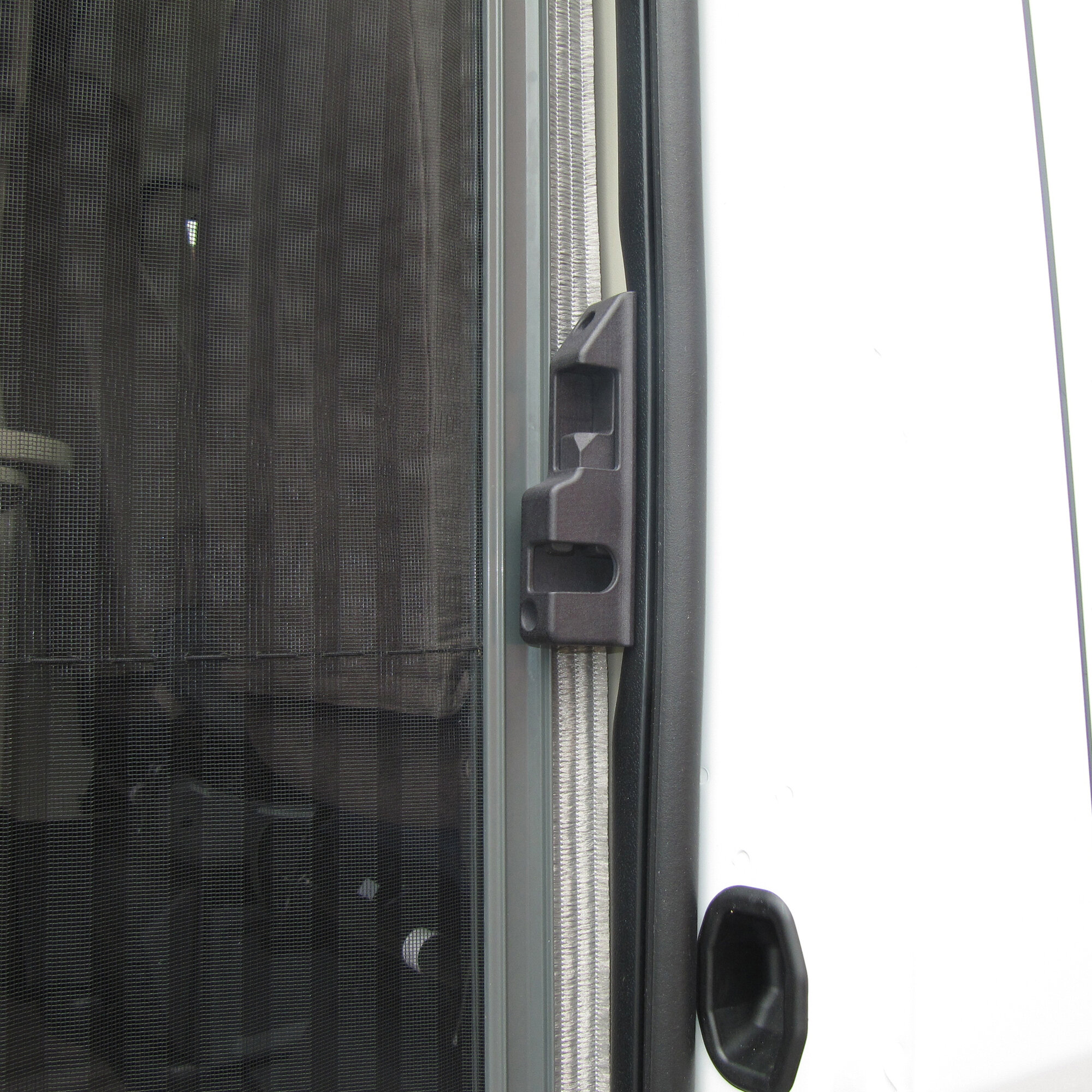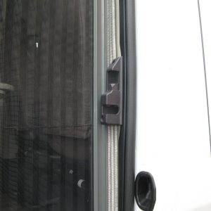 Dodatkowe blokowanie drzwi przesuwnych od wewnątrz. Drzwi są zabezpieczone poprzez przesunięcie dźwigni do przodu. Aby odblokować i otworzyć drzwi przesuwne jednocześnie, wystarczy przesunąć klamkę do tyłu.