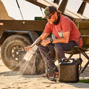 Zbiornik na wodę WaterPORT 2.0 mieści około 7,5 litra wody, którą można przygotować do użycia za pomocą zaledwie kilku naciśnięć pompki (do 2,75 bara). Zbiornik można napełnić tradycyjnym wężem ogrodowym. Ten wygodny zbiornik na wodę można umieścić w bagażniku samochodu i zabrać ze sobą na plażę lub inne aktywności na świeżym powietrzu. Dzięki dyszy wysokociśnieniowej z 5 ustawieniami idealnie nadaje się do wielu zastosowań.