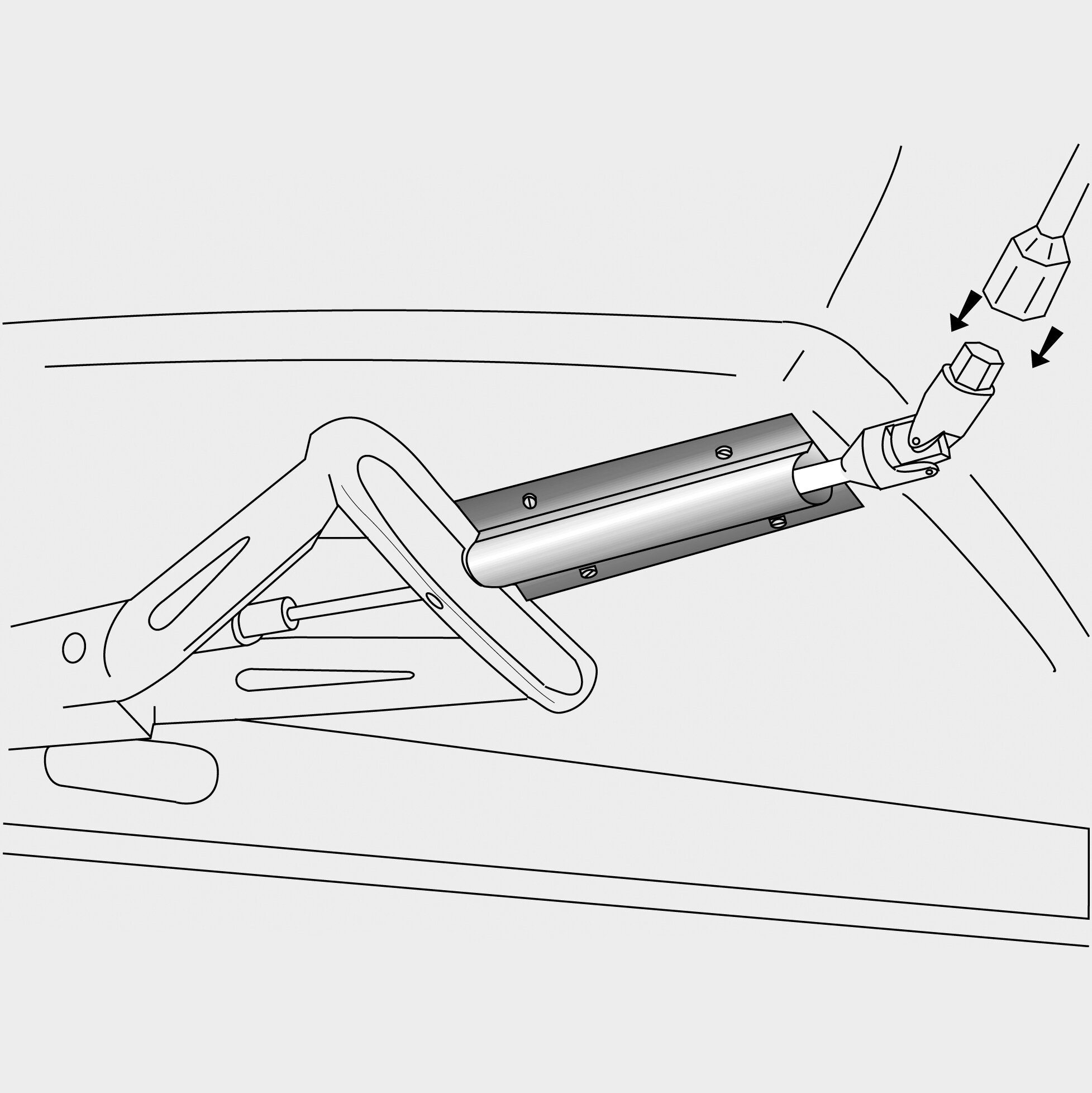 Lokalizator przegubu krzyżakowego, czyli plastikowa rura prowadząca, jest widoczny z pozycji stojącej. Nie musisz klękać, aby znaleźć lokalizator gniazda sześciokątnego ani podtrzymywać narożnika korbą.