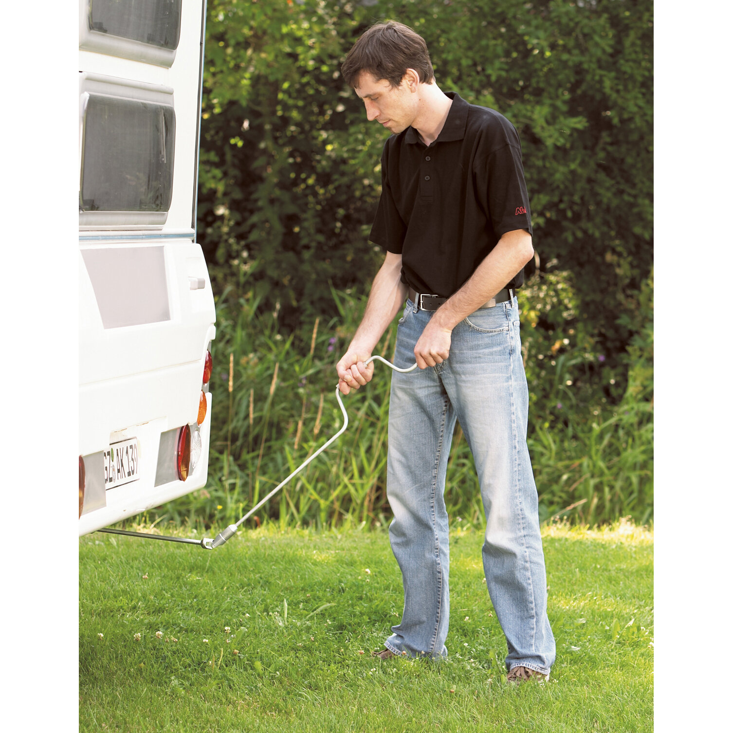 Zestaw AL-KO Comfort umożliwia obsługę podpór narożnych z pozycji stojącej za pomocą przegubu krzyżakowego.