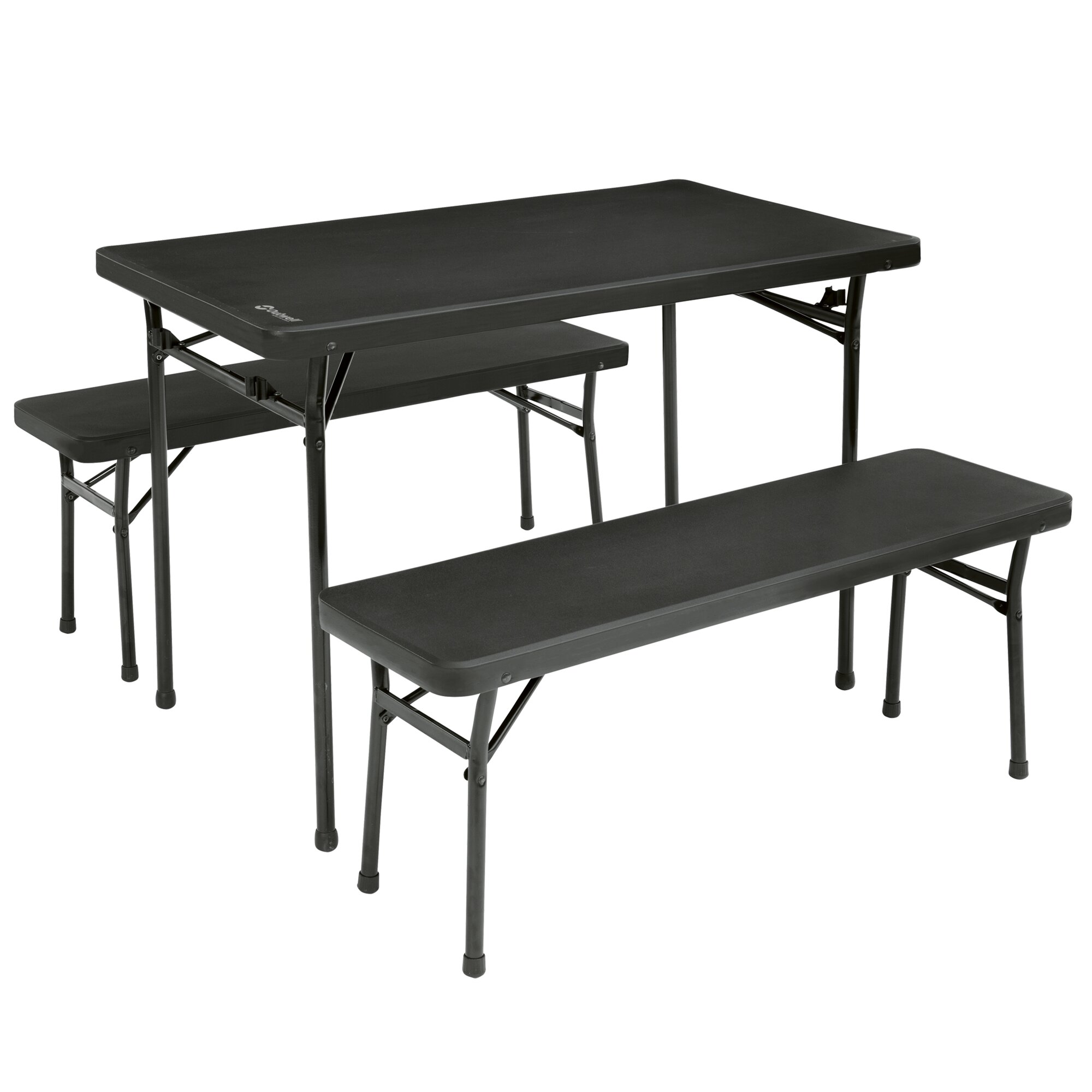 Podróżuj lżej ze stołem i siedziskiem w jednym! Składany zestaw piknikowy Pemberton to praktyczny wybór na letnie wakacje z rodziną i przyjaciółmi. Dwie ławki można przymocować do ramy stołu, co ułatwia transport. Stół wykonany jest z wytrzymałego, wodoodpornego tworzywa sztucznego i może pozostać na zewnątrz przez cały wyjazd, gotowy na każdy posiłek. Wystarczy rozłożyć, aby go użyć. Zestaw zawiera stół o wymiarach 120 x 61 x 70 cm oraz dwie ławki o wymiarach 102 x 28 x 44 cm. Maksymalne obciążenie: 80 kg (stół) i 100 kg (jedna ławka).